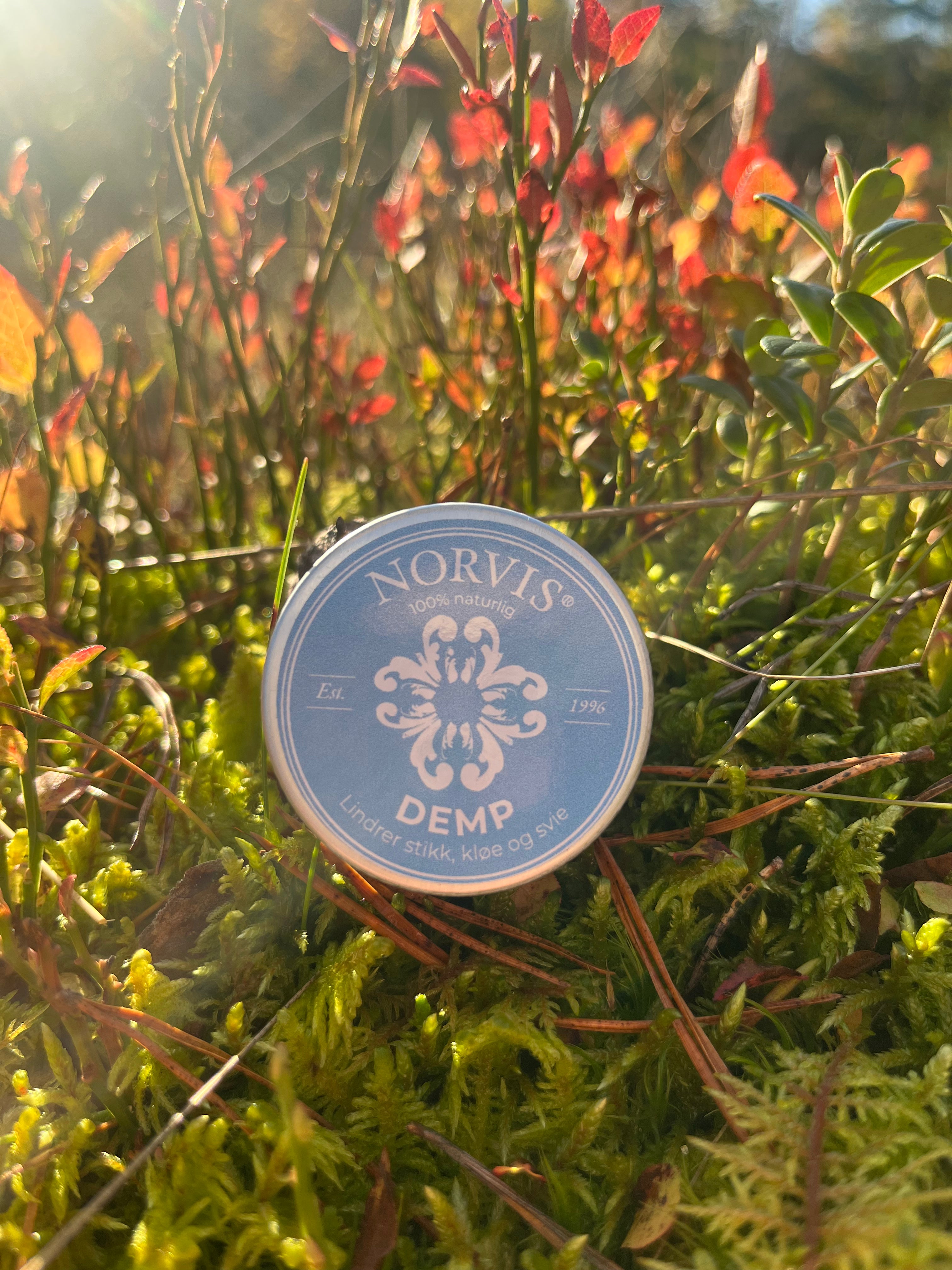 Norvis Demp er en beroligende og kjølende salve som lindrer svie og kløe etter myggstikk, insektstikk, brennesle, brennmanet og forkjølelsessår. Den er et must-have i førstehjelpskrinet – perfekt for alle som elsker å være ute i naturen.