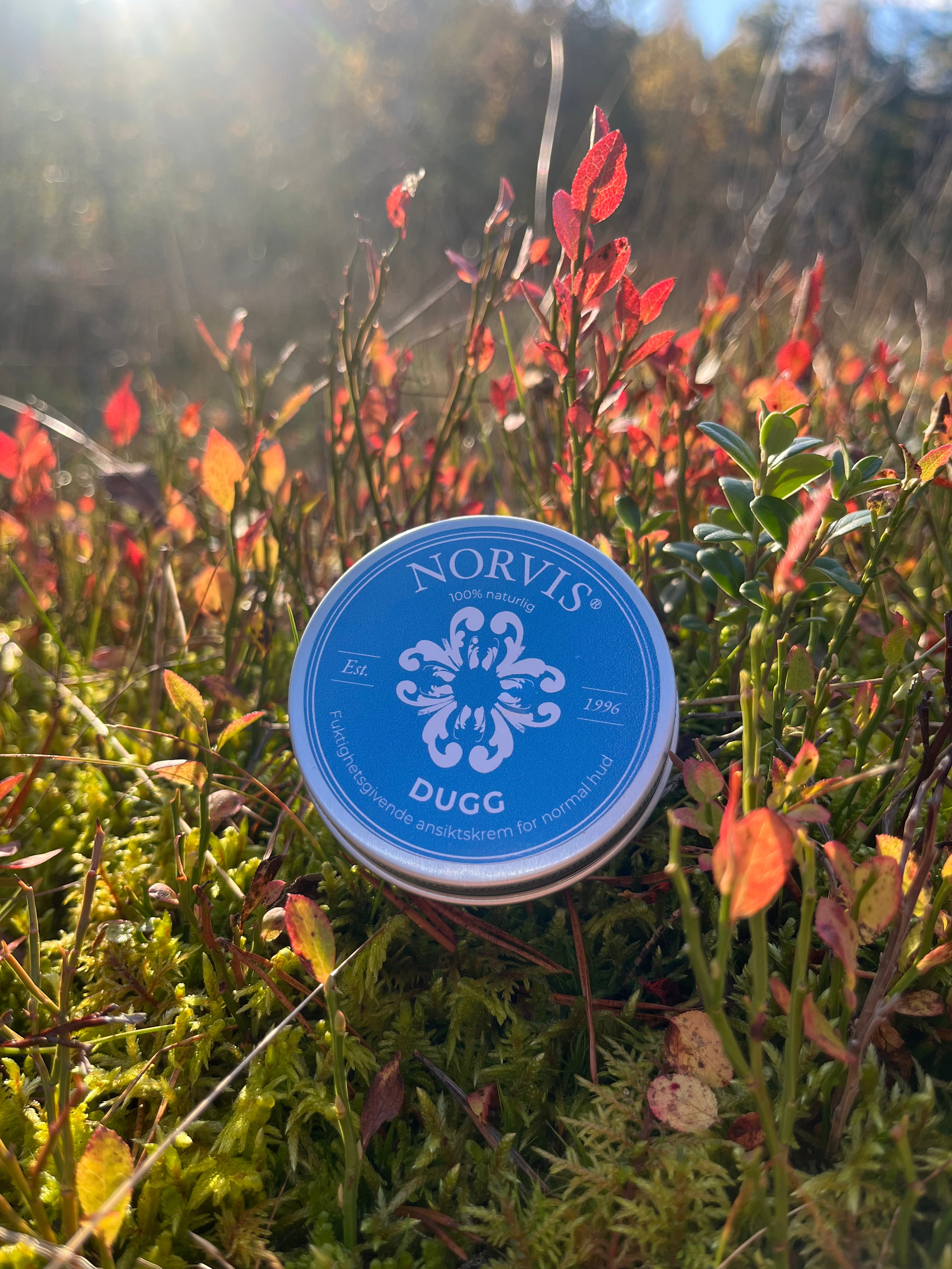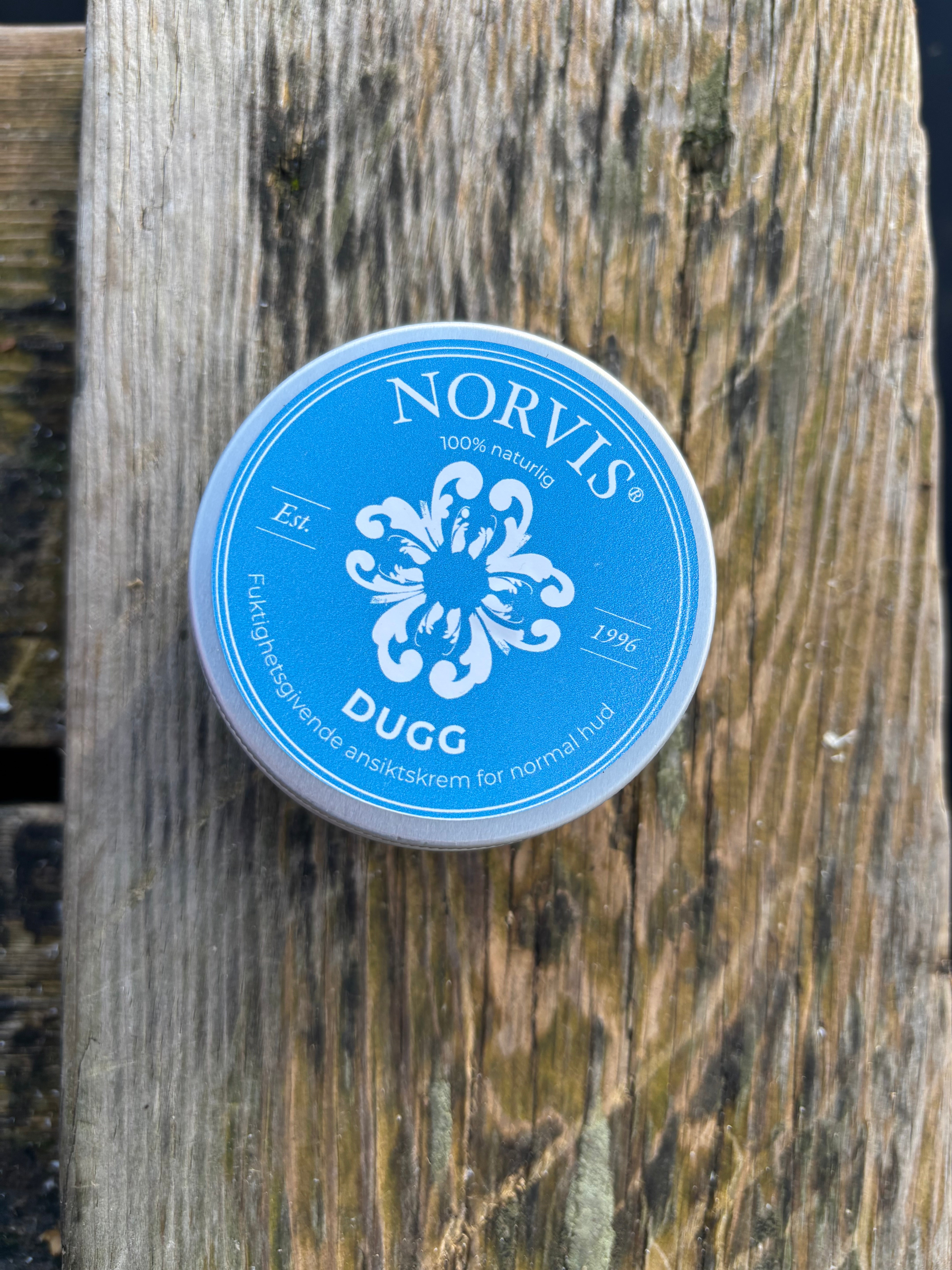 Norvis Dugg er en lett, fuktighetsgivende dagkrem laget for deg med en kombinasjon av tørr hud og fet hud. Den gir huden nødvendig fukt samtidig som den balanserer og gir en frisk, ren følelse hele dagen.
