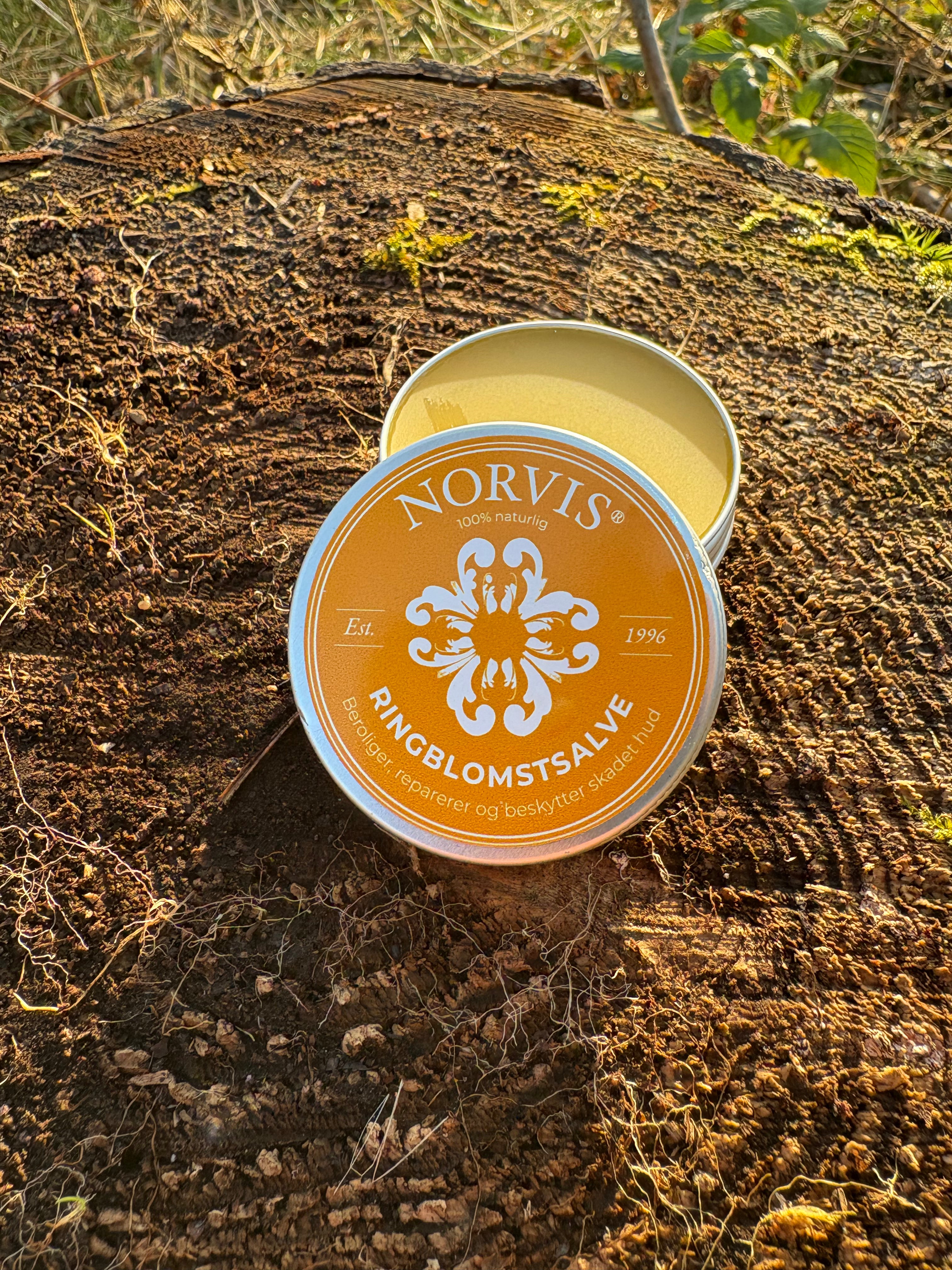 Gi huden din den beste pleien naturen har å by på. Norvis Ringblomstsalve er en skånsom og effektiv salve utviklet for å berolige, reparere og beskytte skadet hud. Med ringblomst – en av naturens mest helende planter, virker salven lindrende på sår, rød og irritert hud, lettere forbrenninger og solbrenthet.
